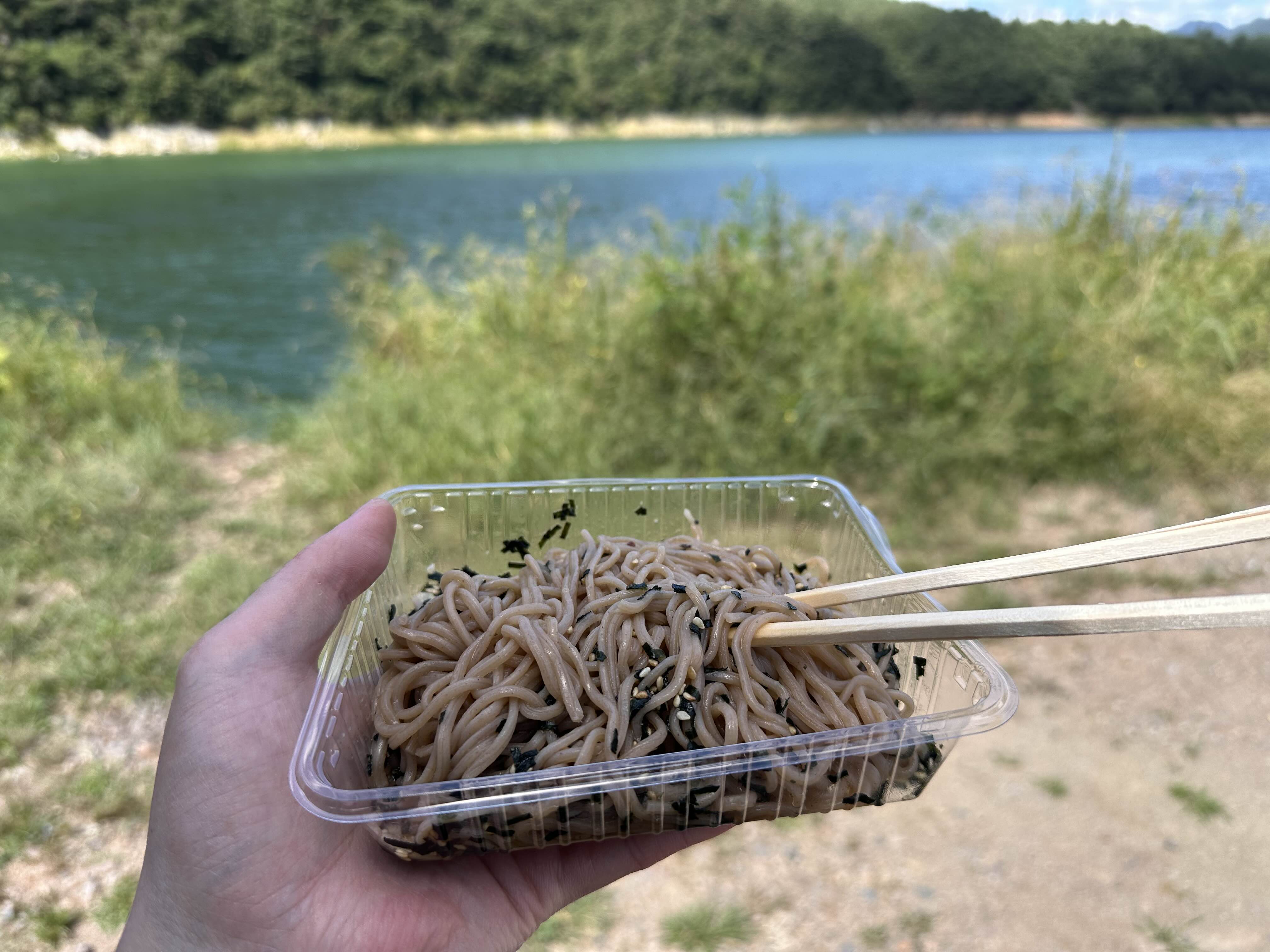 차크닉의 하이라이트는 뭐니 뭐니 해도 식사죠! 오늘의 메뉴는 준비해 온 노브랜드 들기름 막국수 (1,880원) 였습니다.