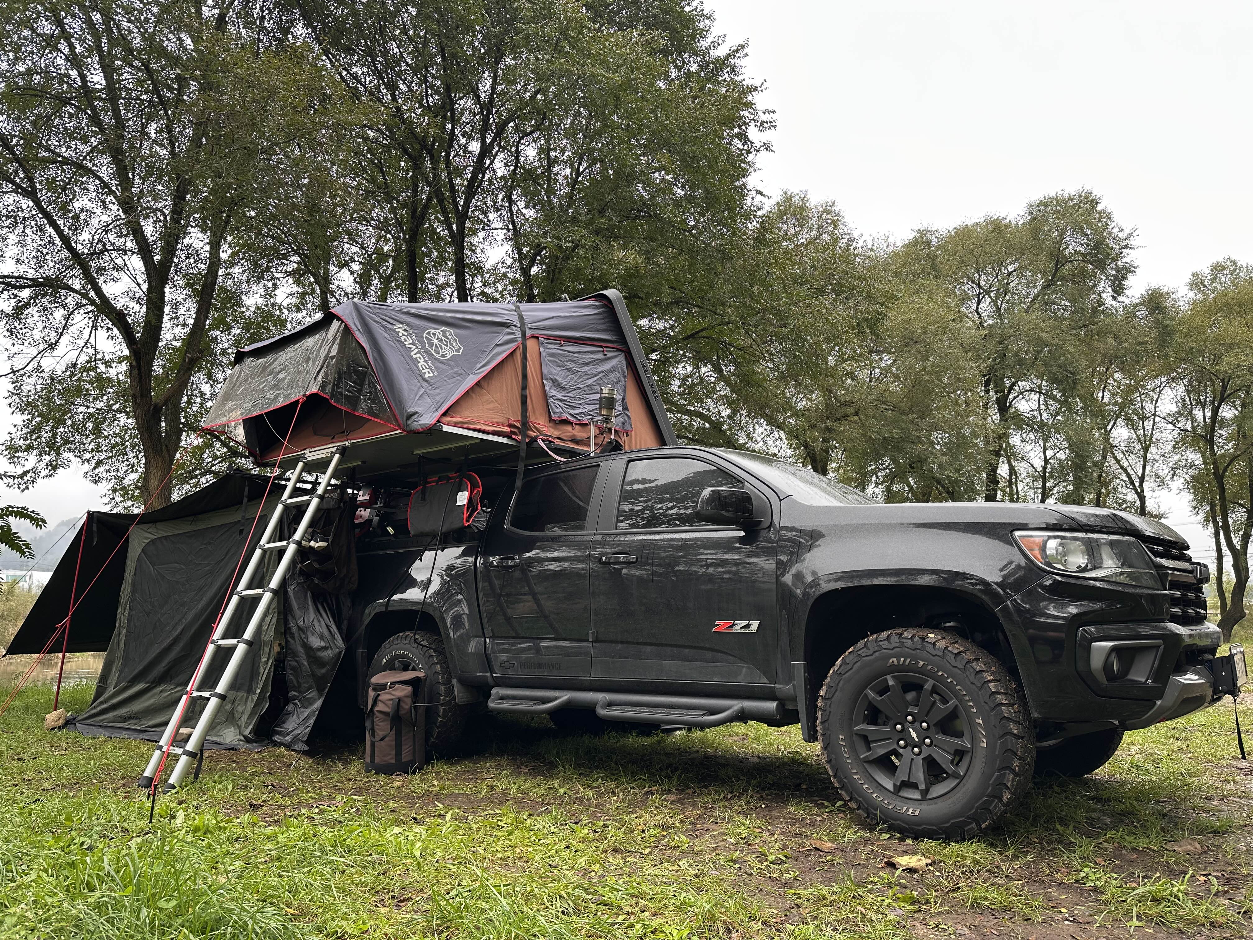 엘엔티오버랜드 ES 후방 어닝룸을 콜로라도 후방에 처음 설치해 봤는데, 픽업트럭과 정말 잘 어울리더군요. 👍