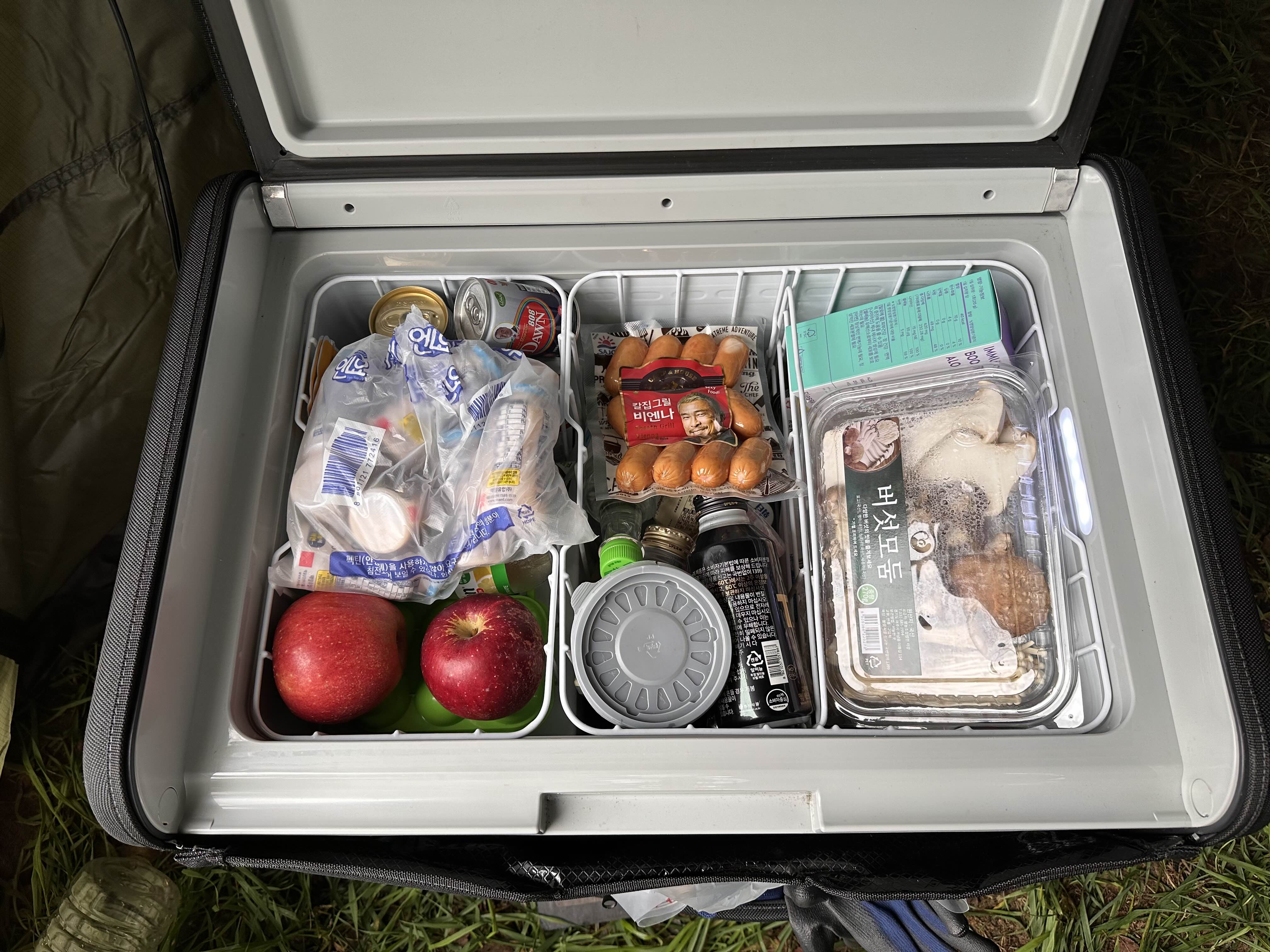 비 속에서 피칭을 끝내고 늦은 점심시간. 냉장고에는 추석 음식과 함께 각종 재료를 꽉 채워왔습니다.