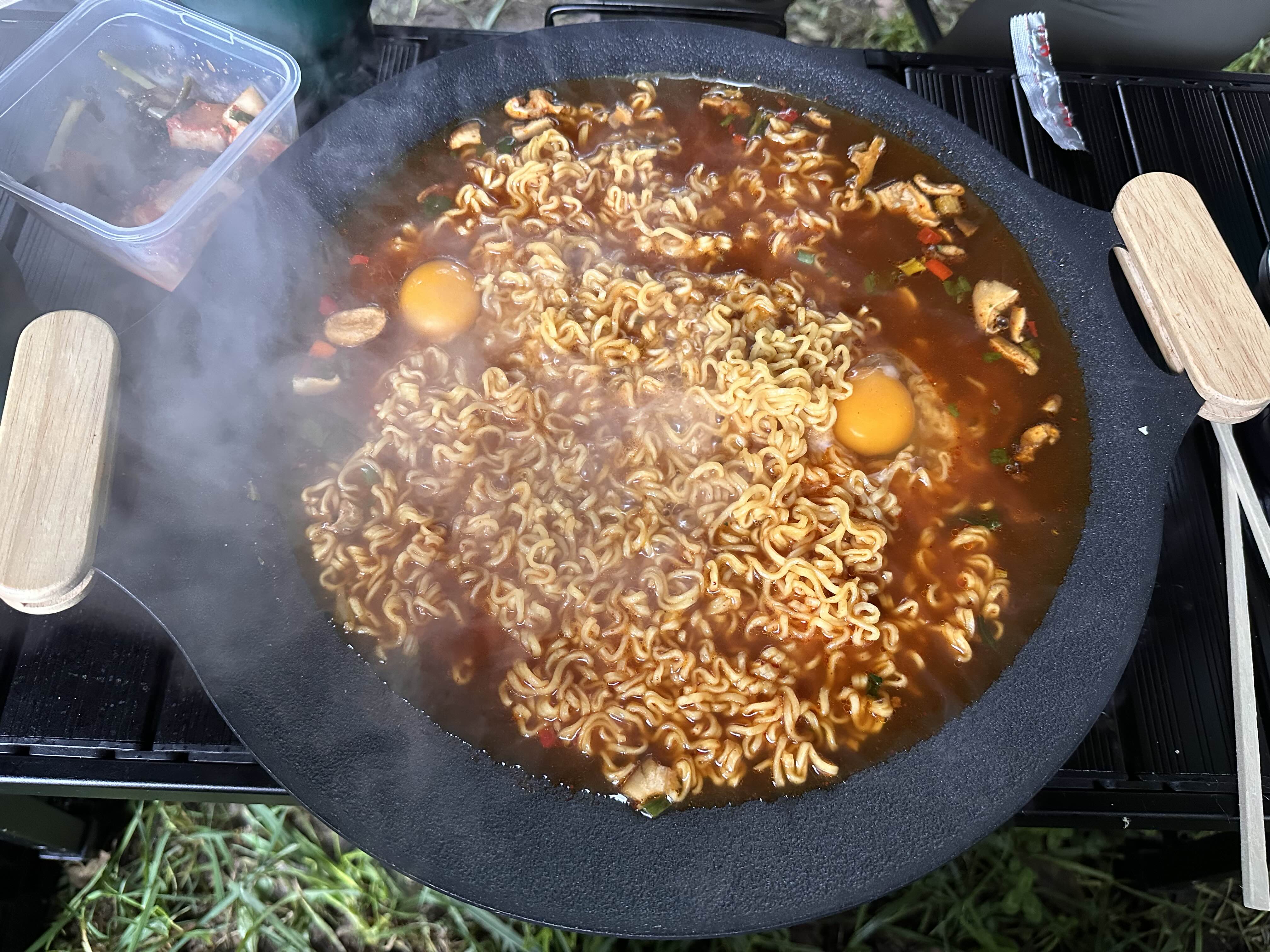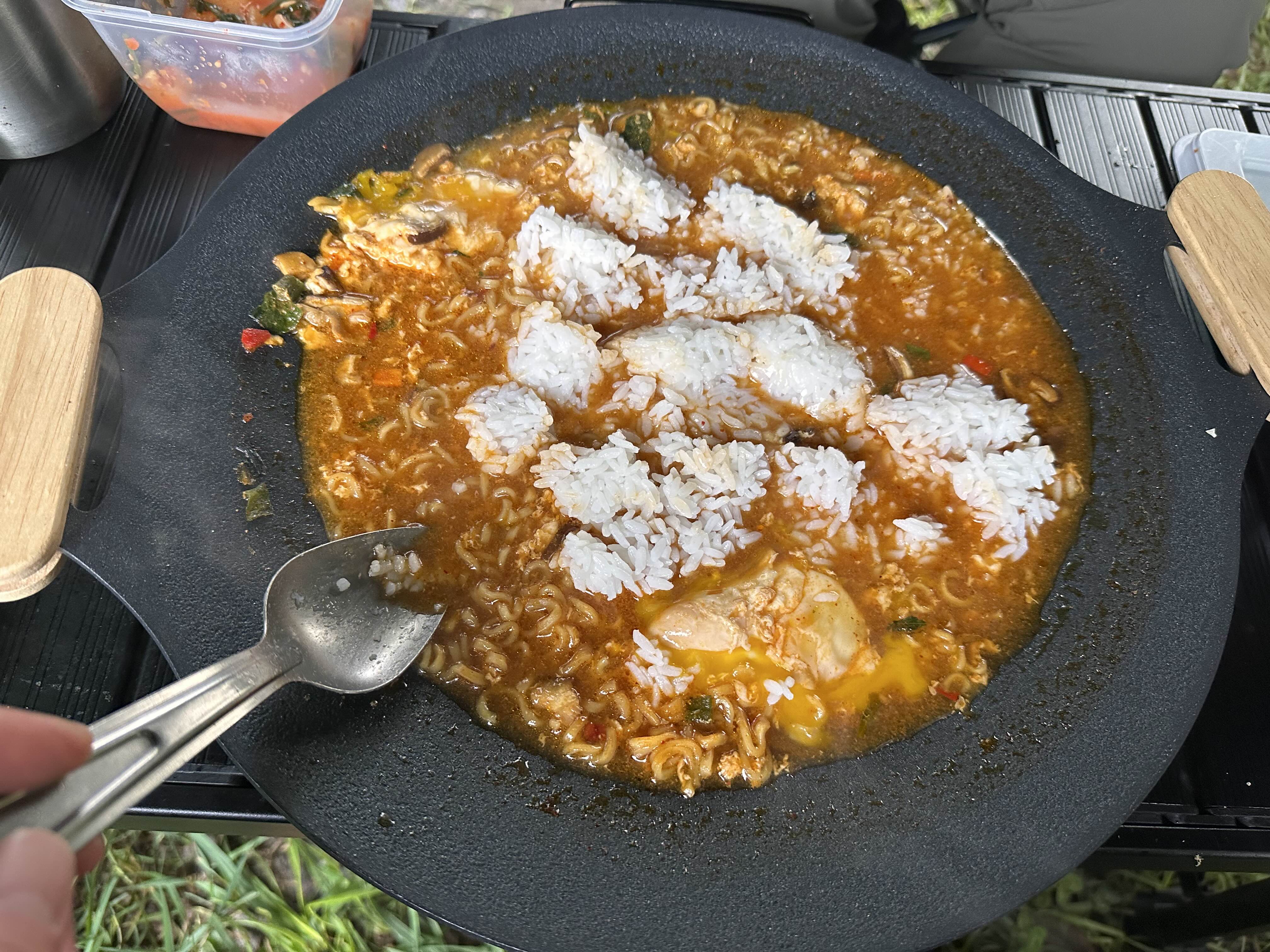 노브랜드 그리들에 신라면 2개와 계란을 넣고 끓여 먹었는데, 이보다 맛있을 수 있을까요? 😋