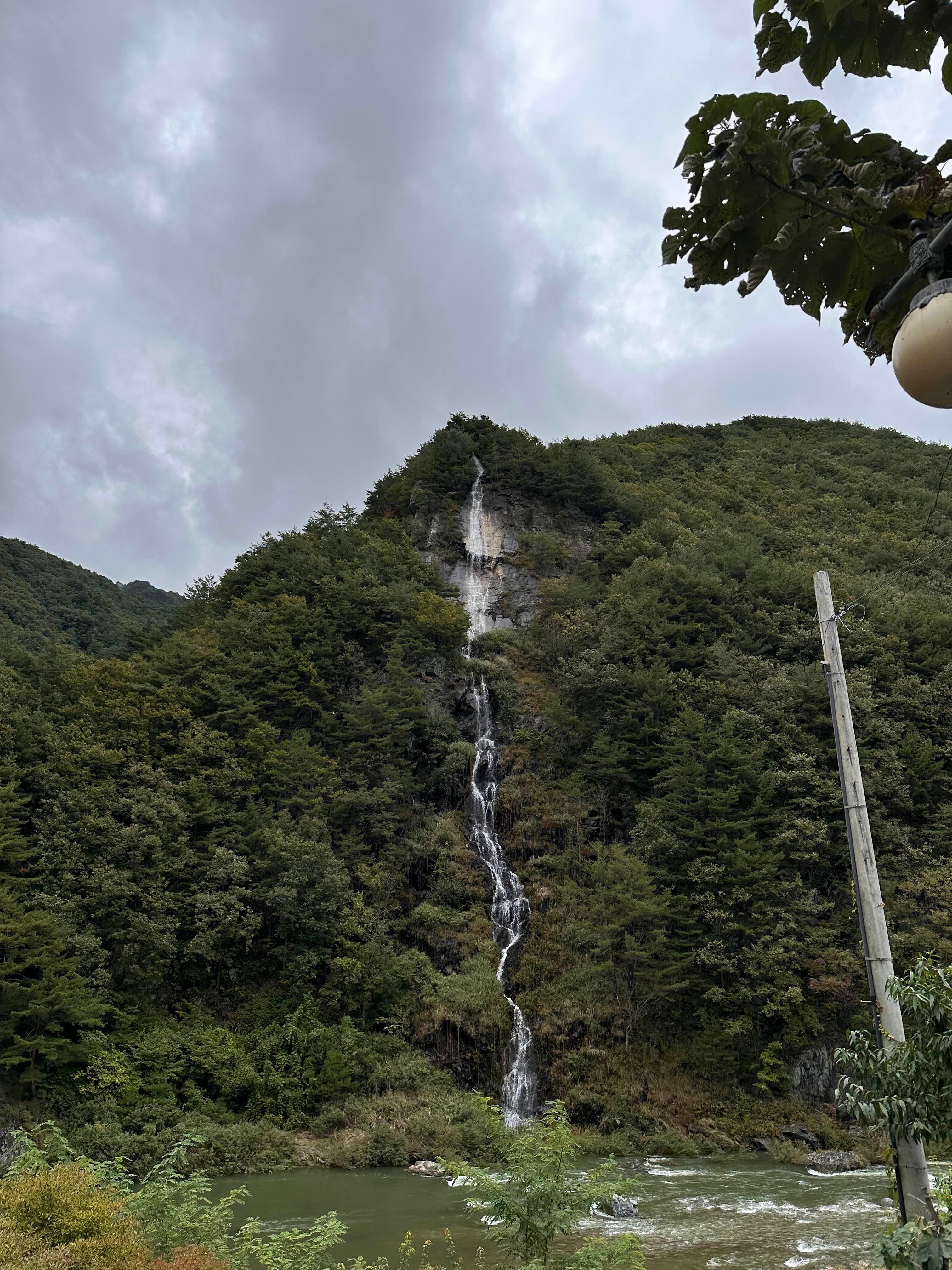 정선 국도를 달리던 중 멀리서 시원한 폭포가 눈에 들어와 잠깐 차를 멈췄습니다.