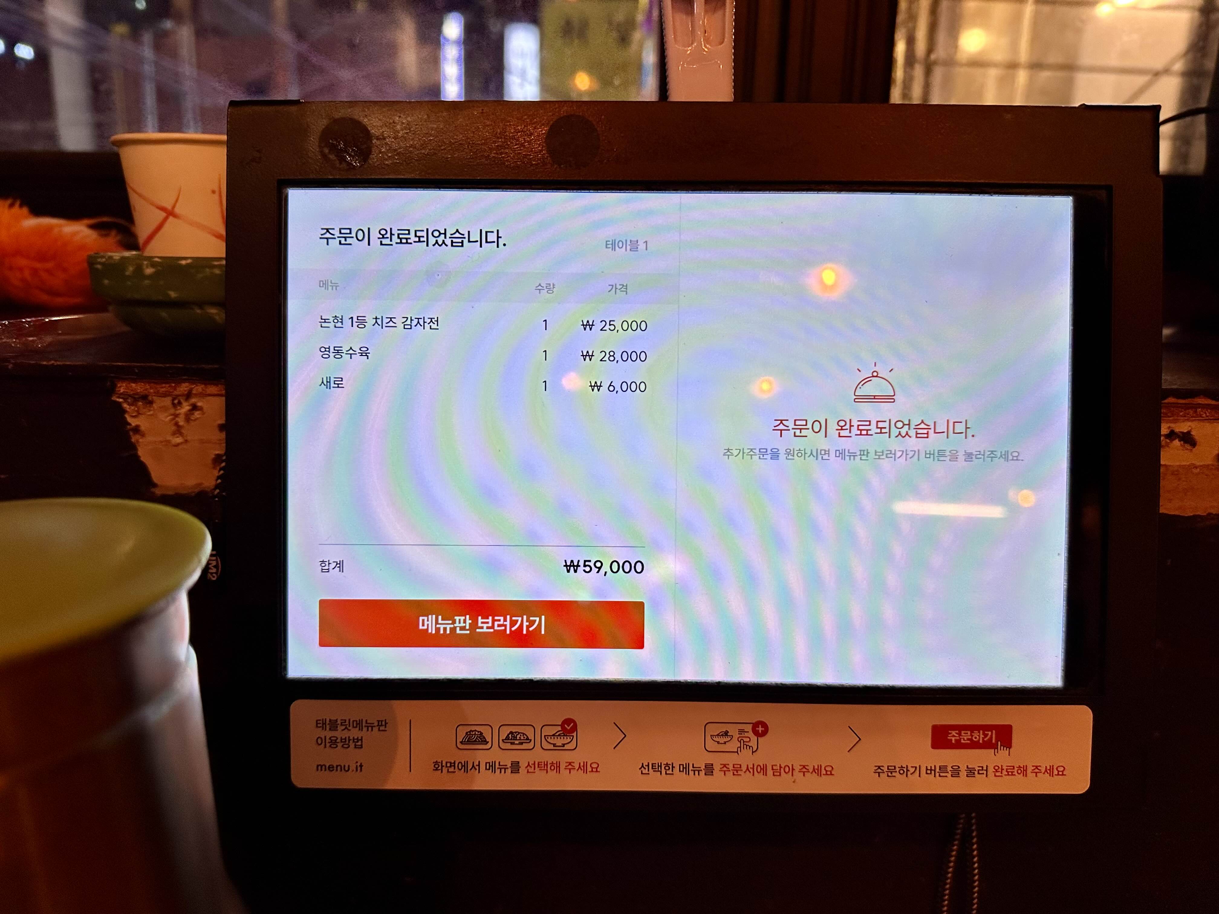 각 테이블마다 태블릿 주문기와 미니 버너가 세팅되어 있어 주문과 조리가 간편했습니다.
