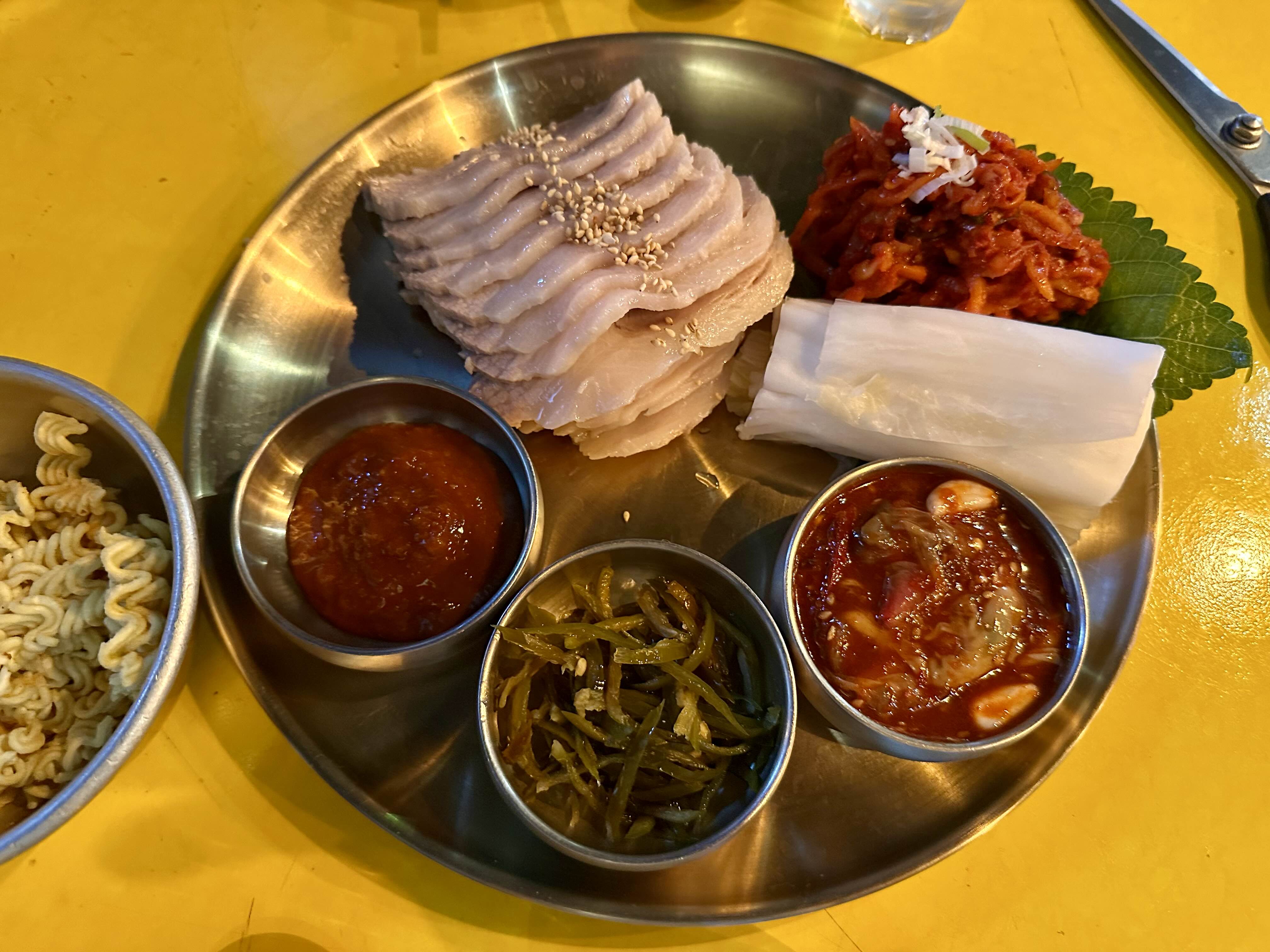 가장 먼저 눈에 들어온 건 다름 아닌 굴젓이었습니다. 김치와 함께 곁들여진 얇은 수육은 비주얼부터 합격!