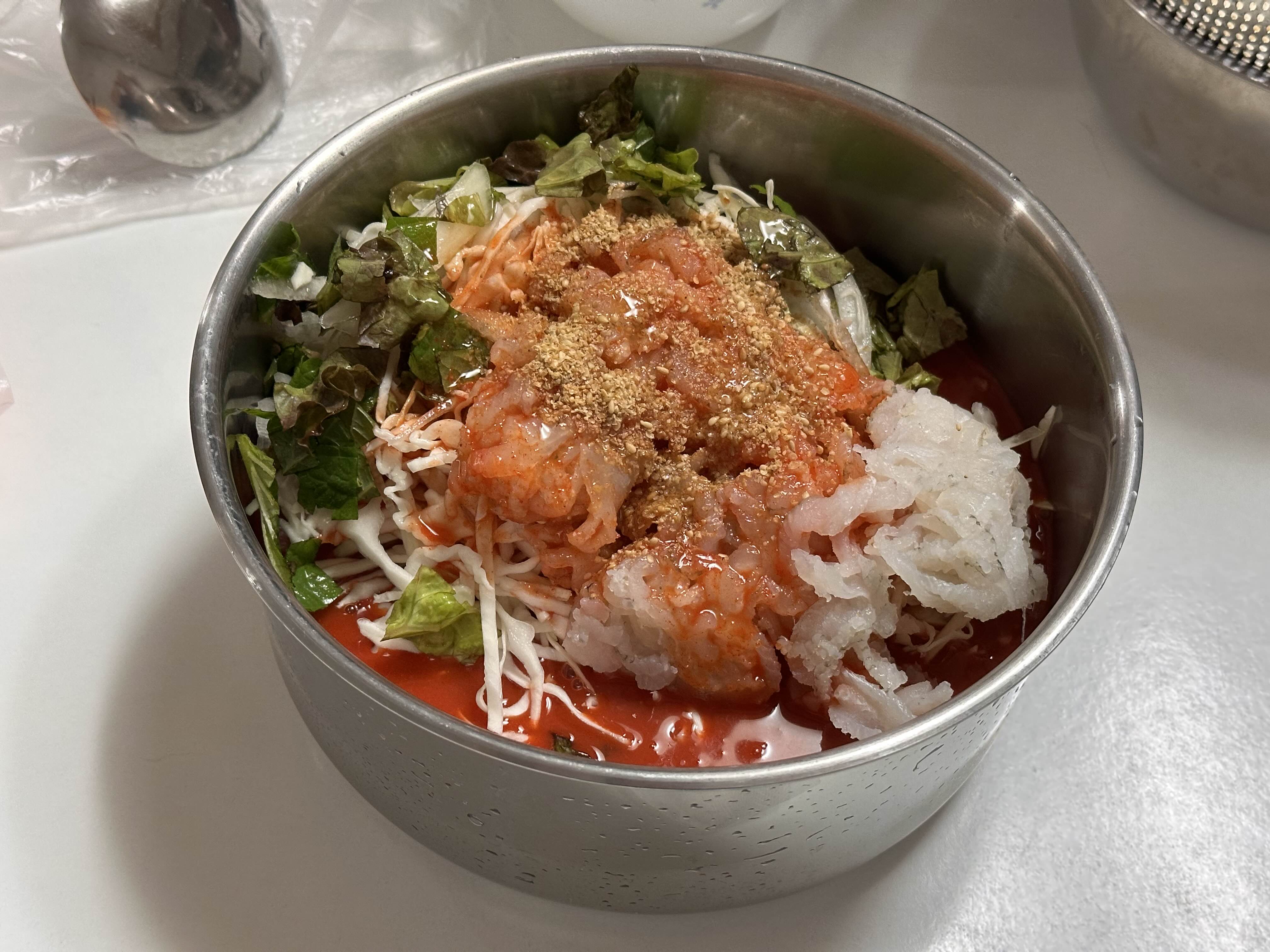혼자만 먹기 아쉬워서 돌아오는 길에 참가자미 물회 2인분을 따로 포장해 왔어요.