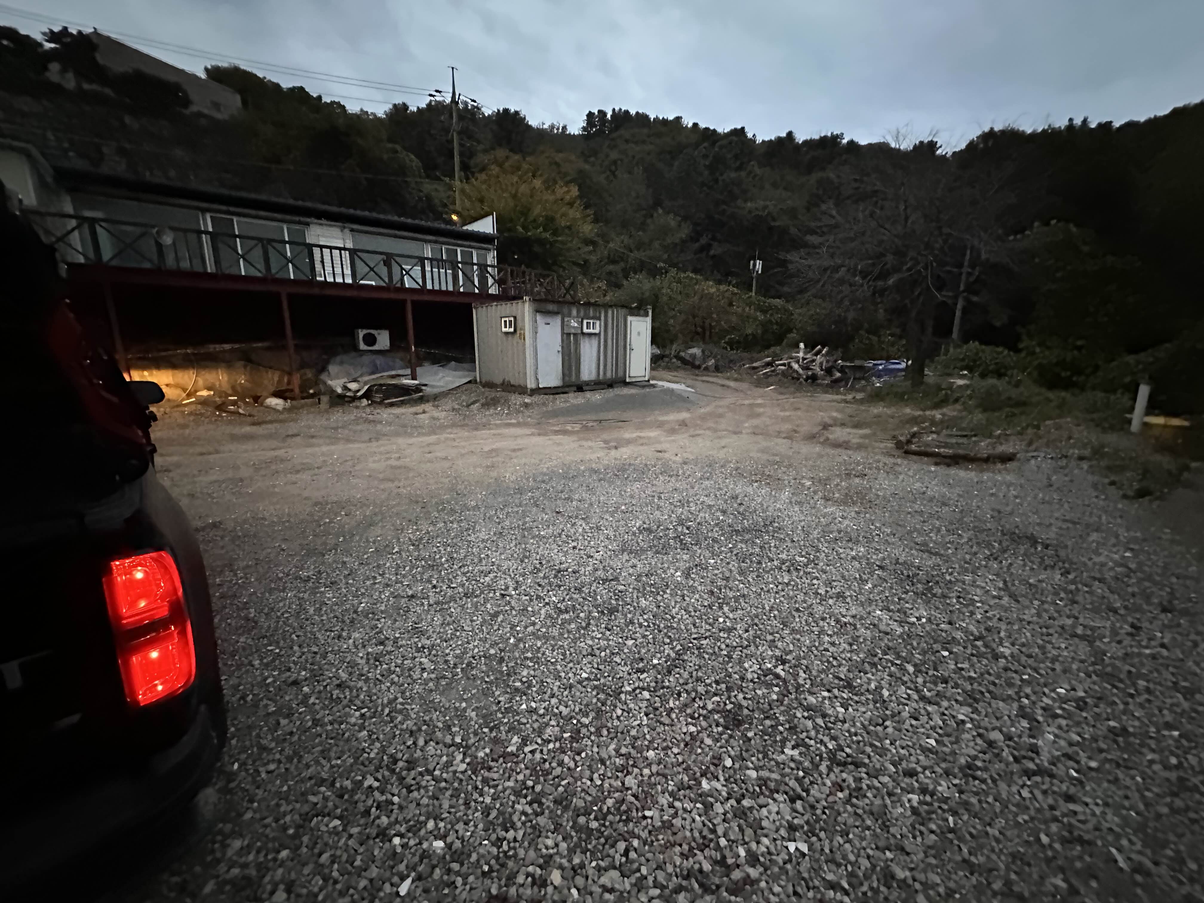 편의점 뒤편에는 차량 5대 정도가 머물 수 있는 파쇄석이 준비되어 있고, 맞은편에는 화장실도 있어 편의성이 좋습니다.