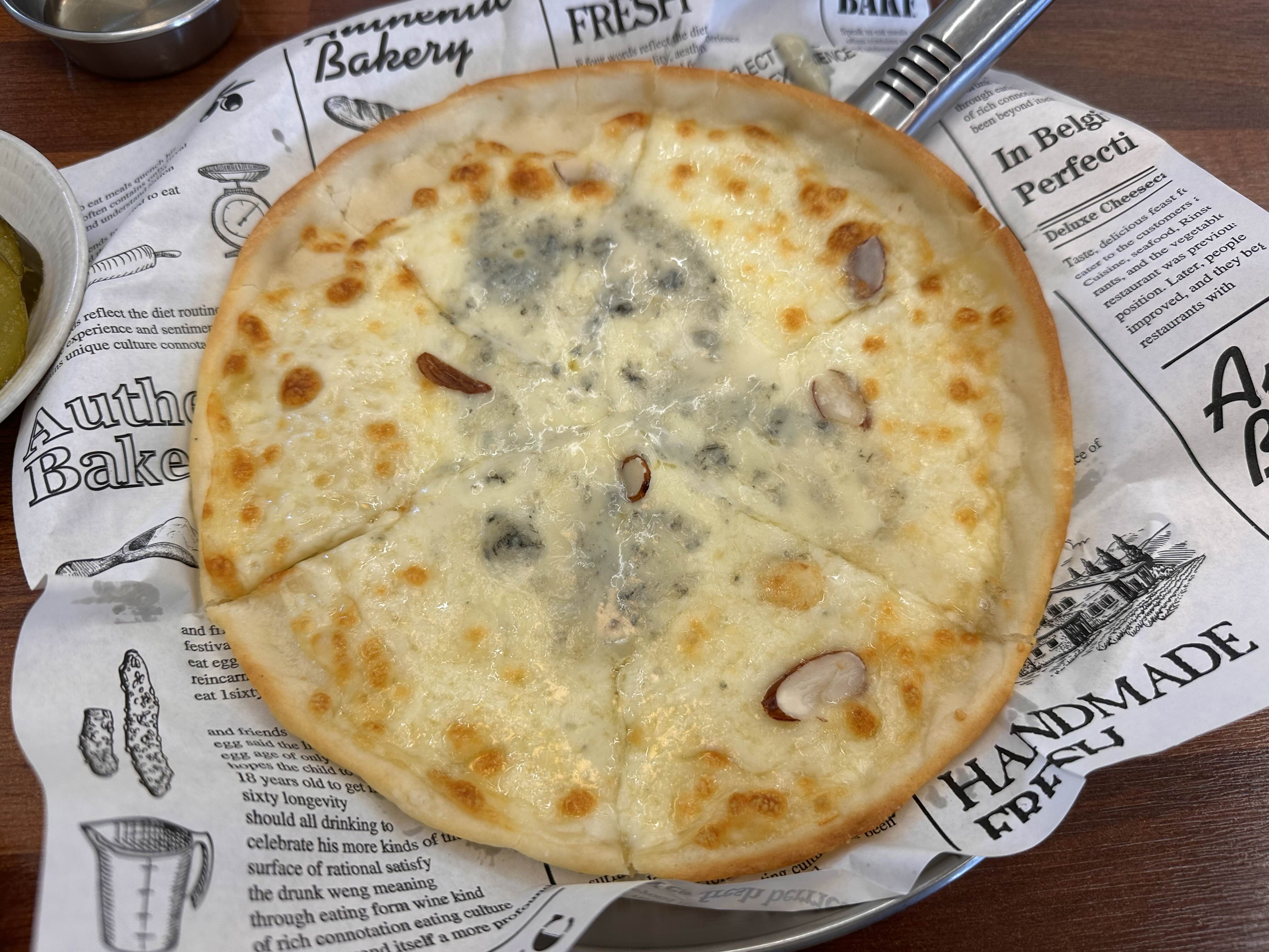 얇은 도우의 씬 피자 스타일로 크기는 아담하지만, 진한 치즈 향과 달콤한 꿀의 조화가 정말 매력적이었어요.