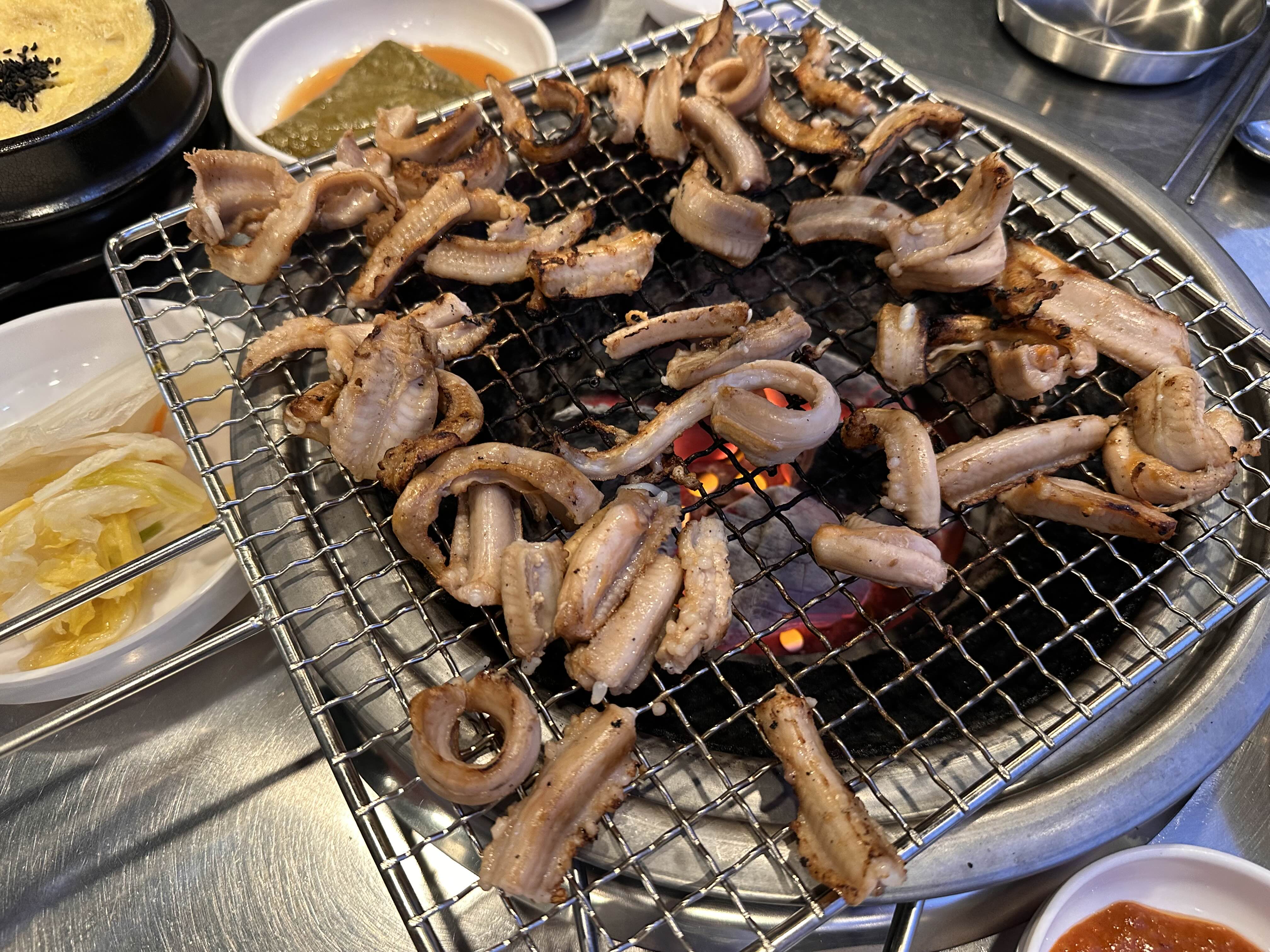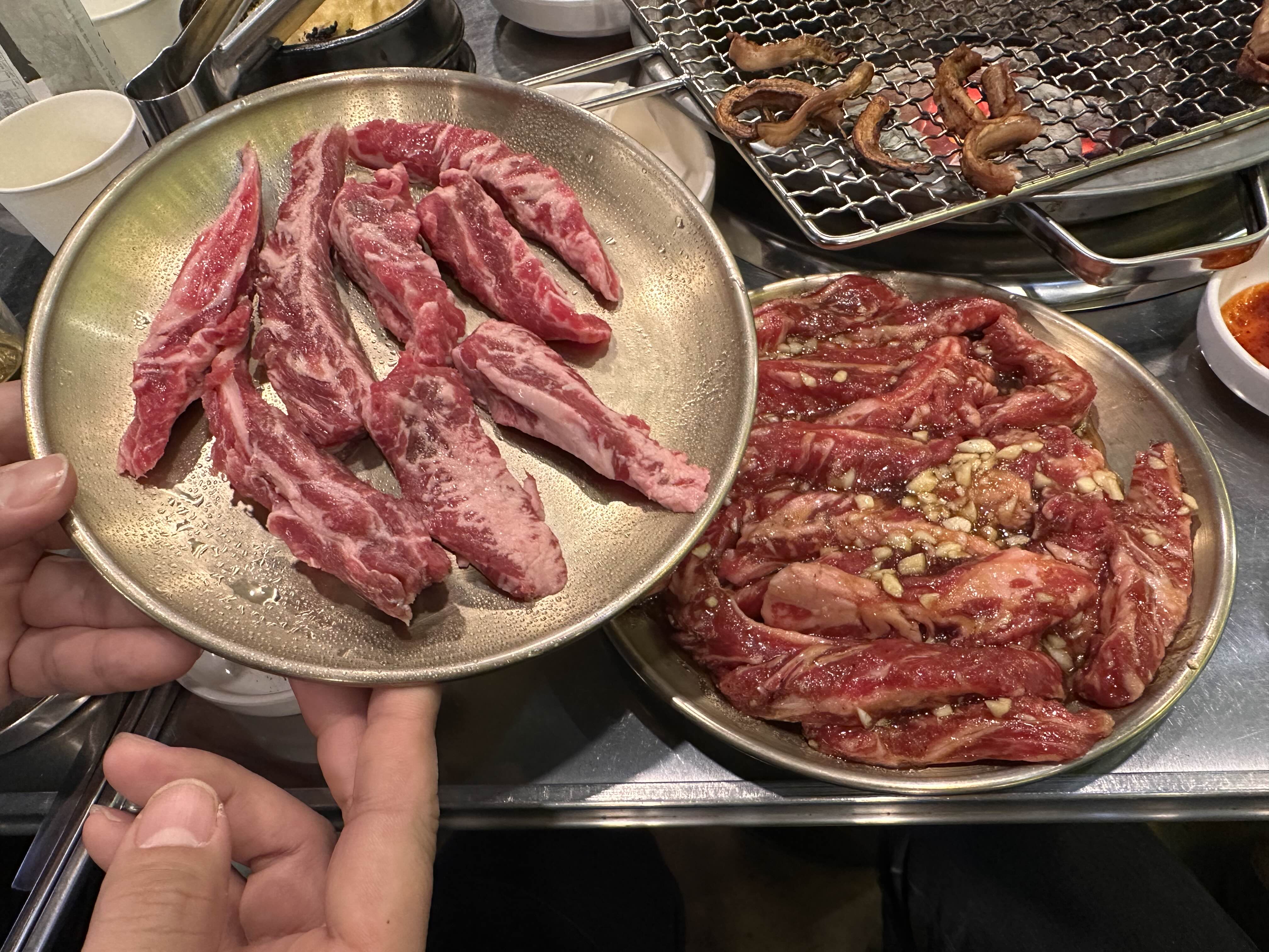 도중에 일행이 더 합류하면서 이 집의 간판 메뉴인 갈빗살을 추가했습니다. 꼼장어와 갈빗살의 조합은 처음이었는데, 이거 생각보다 훨씬 괜찮더라고요!