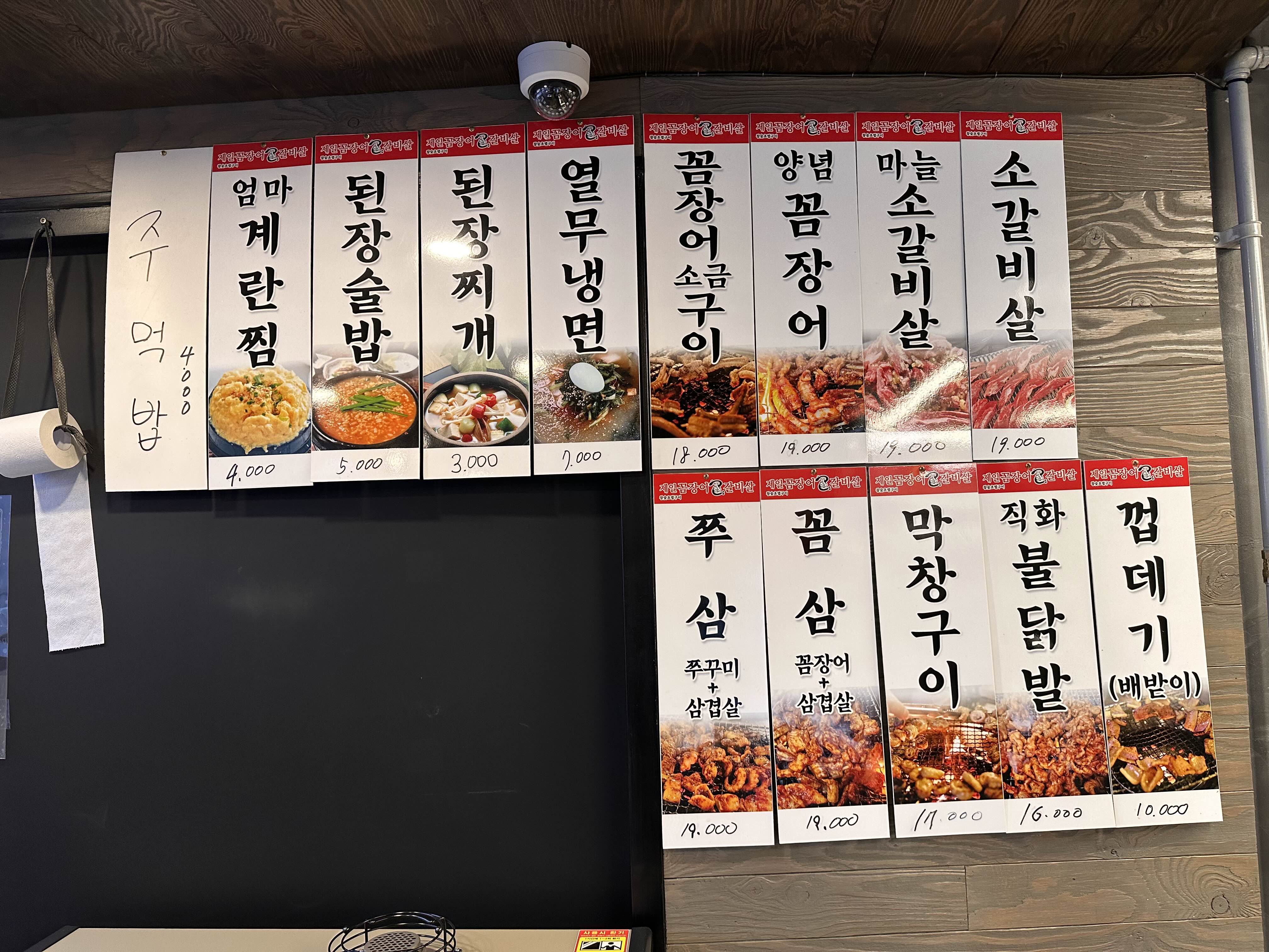 오늘의 메뉴 선택은 바로 꼼장어와 갈빗살! 애주가들이라면 그냥 지나칠 수 없는 환상의 조합이죠.