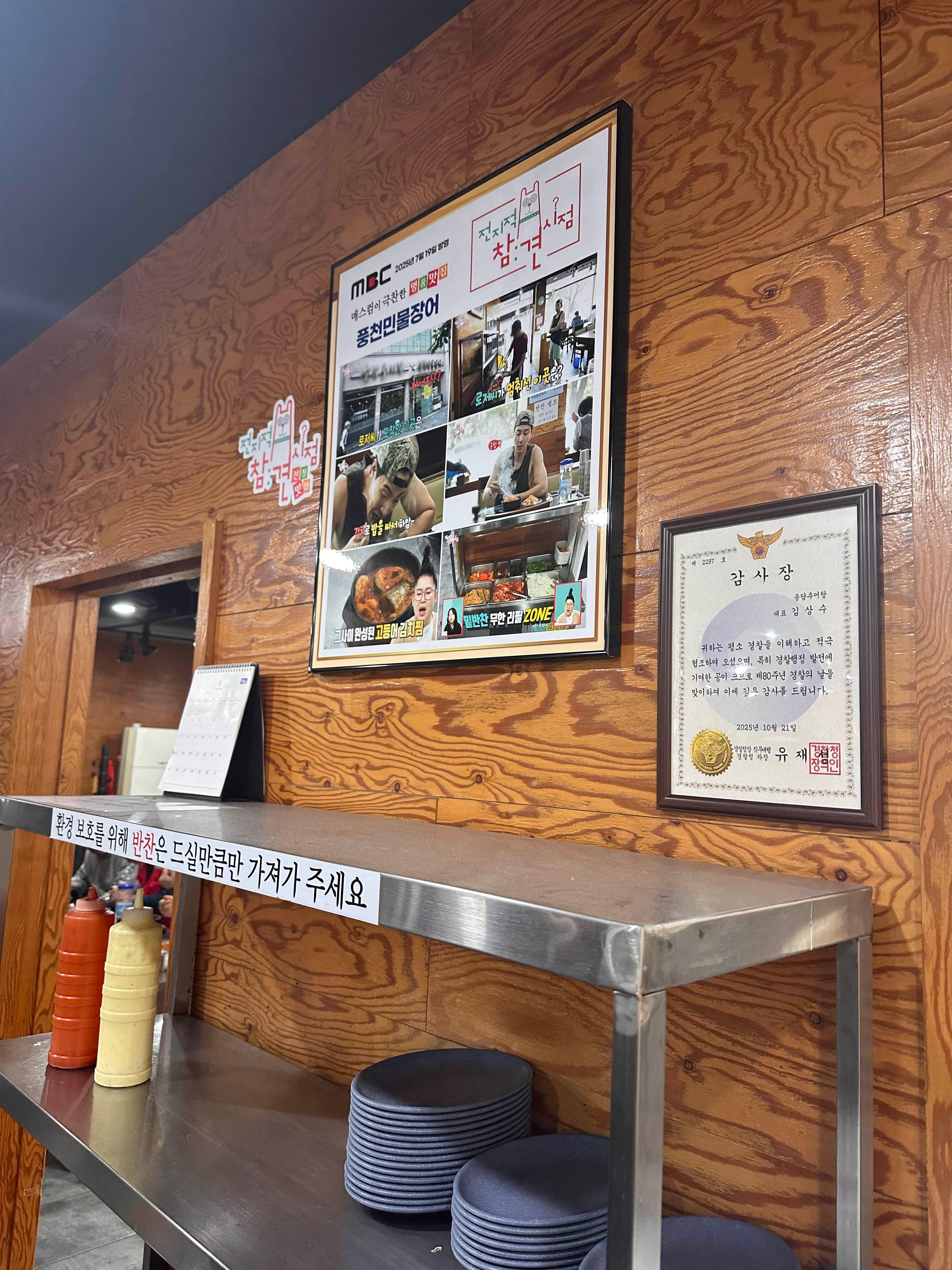 가게 이름은 **'풍천민물장어'**인데, 재미있게도 메뉴판에 장어가 없습니다! (반전 매력일까요? 😂) 하지만 실내로 들어서면 쉴 새 없이 몰려드는 손님들을 보며 "아, 여기 진짜 로컬 맛집이구나"라는 확신이 바로 듭니다.