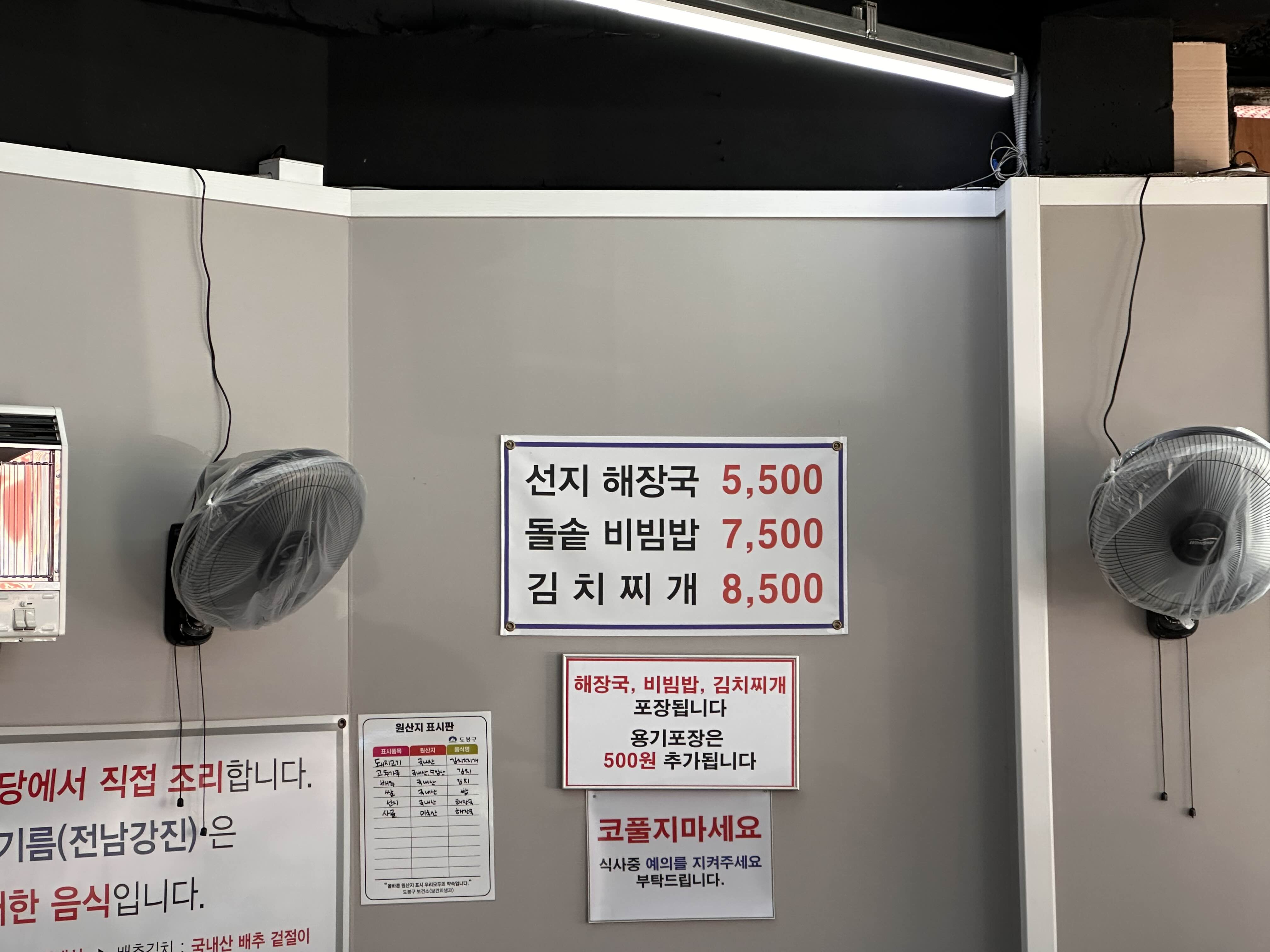 가장 인기 있는 메뉴는 선지해장국과 돌솥비빔밥이지만, 오늘은 제가 먹을 선지해장국과 딸아이를 위한 김치찌개를 주문했습니다.