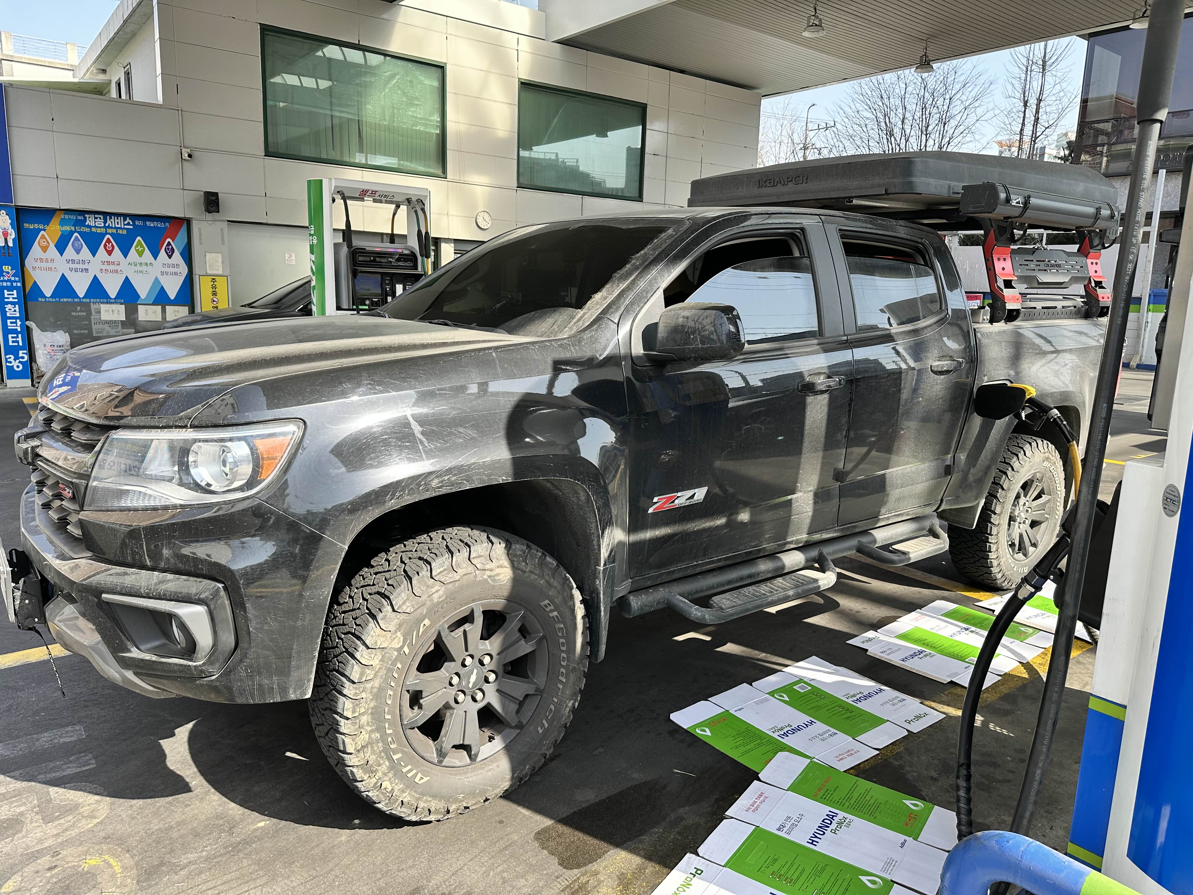 콜로라도에 휘발유를 가득 채우고 출발 준비 완료.