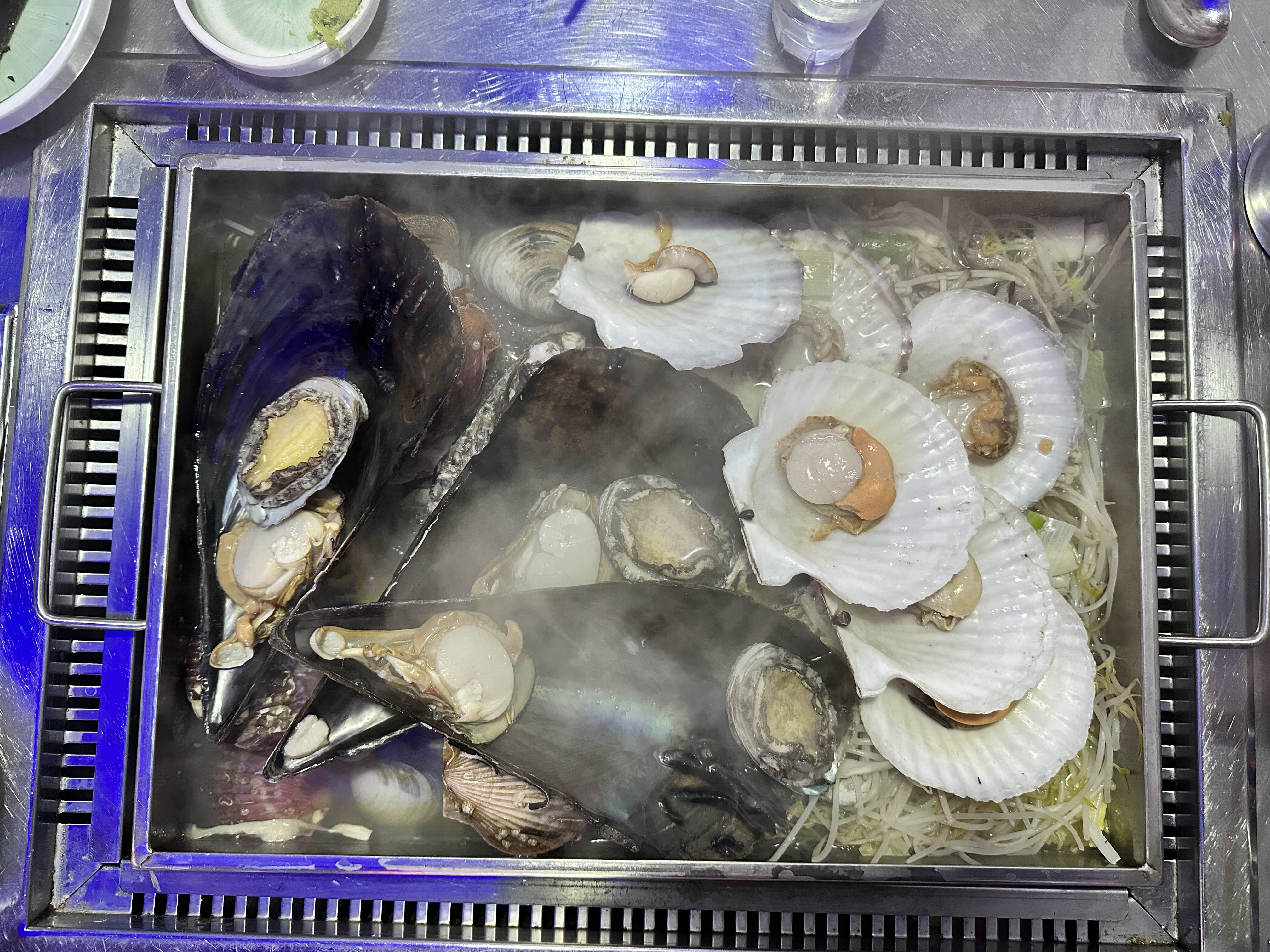 해산물 전문점답게 다양한 메뉴가 준비되어 있었으며, 조개찜과 막회 외에도 가리비, 전복, 산낙지 등 여러 해산물을 추가로 주문할 수 있는 구성입니다.