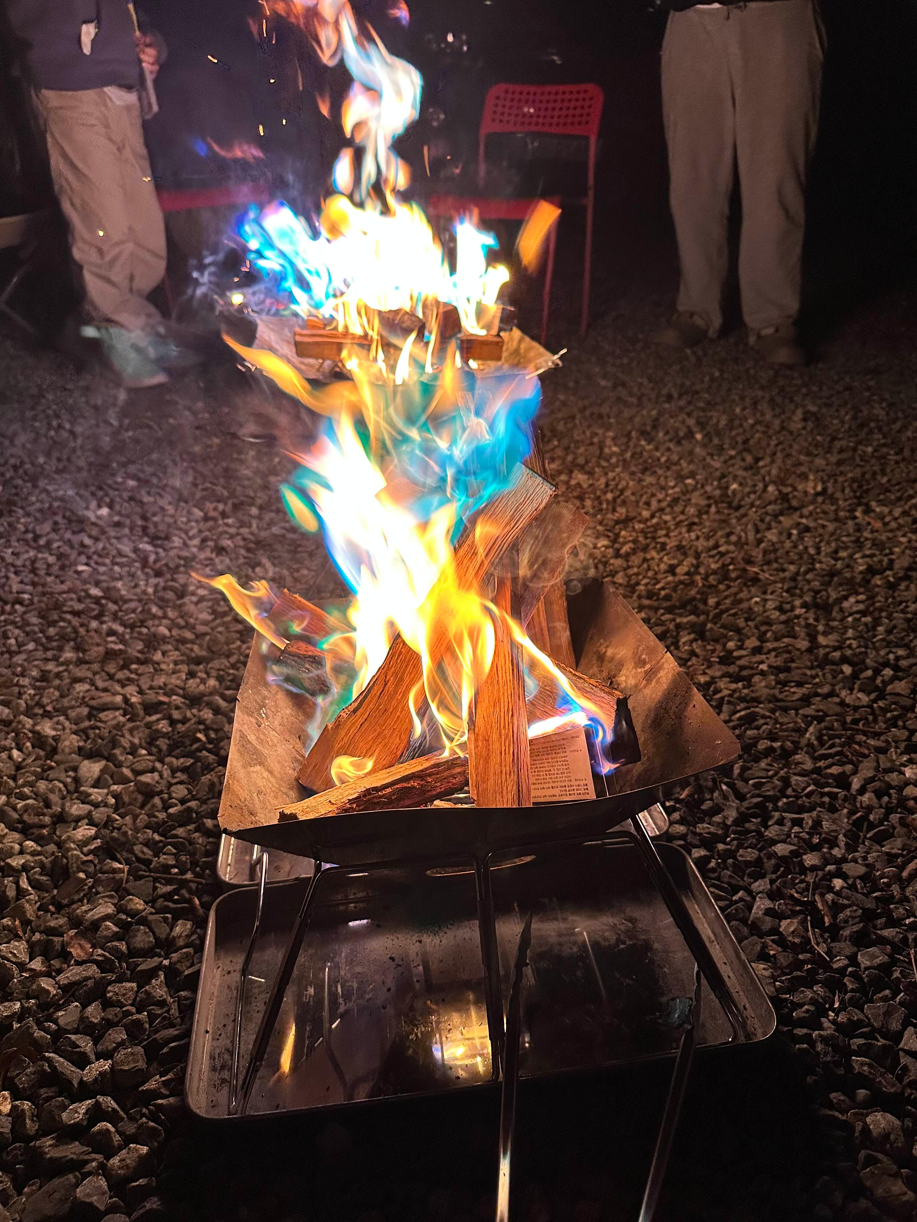 타오르는 장작 소리와 함께 오색빛깔로 변하는 '매직 파이어'를 바라보고 있으니, 그동안 쌓였던 스트레스가 한 번에 날아가는 기분이었어요.