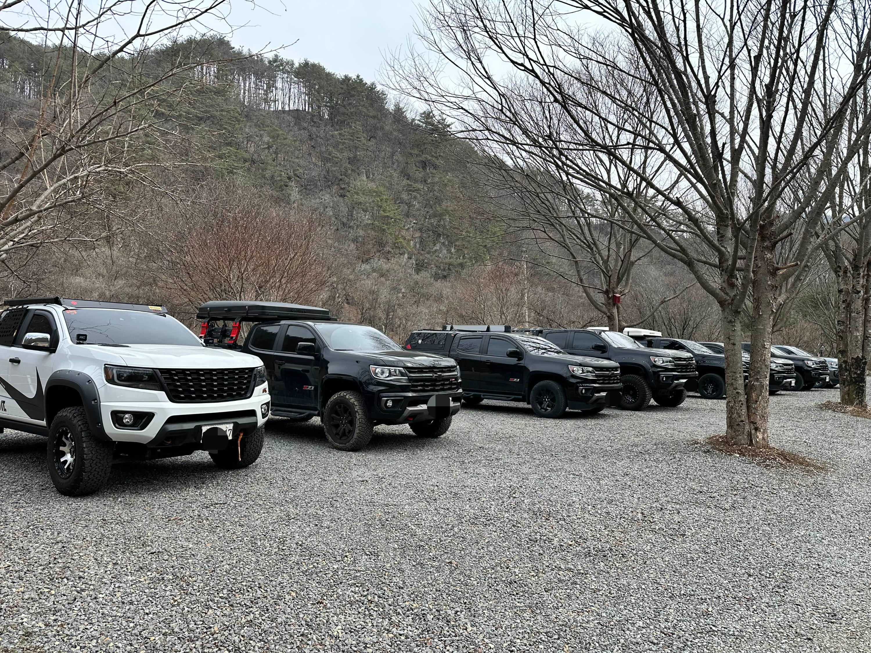 다음 날 아침, 가벼운 식사를 마친 뒤 이번 캠핑의 주인공인 콜로라도 차량들을 한데 모아 멋지게 세워두고 기념사진을 촬영했습니다.