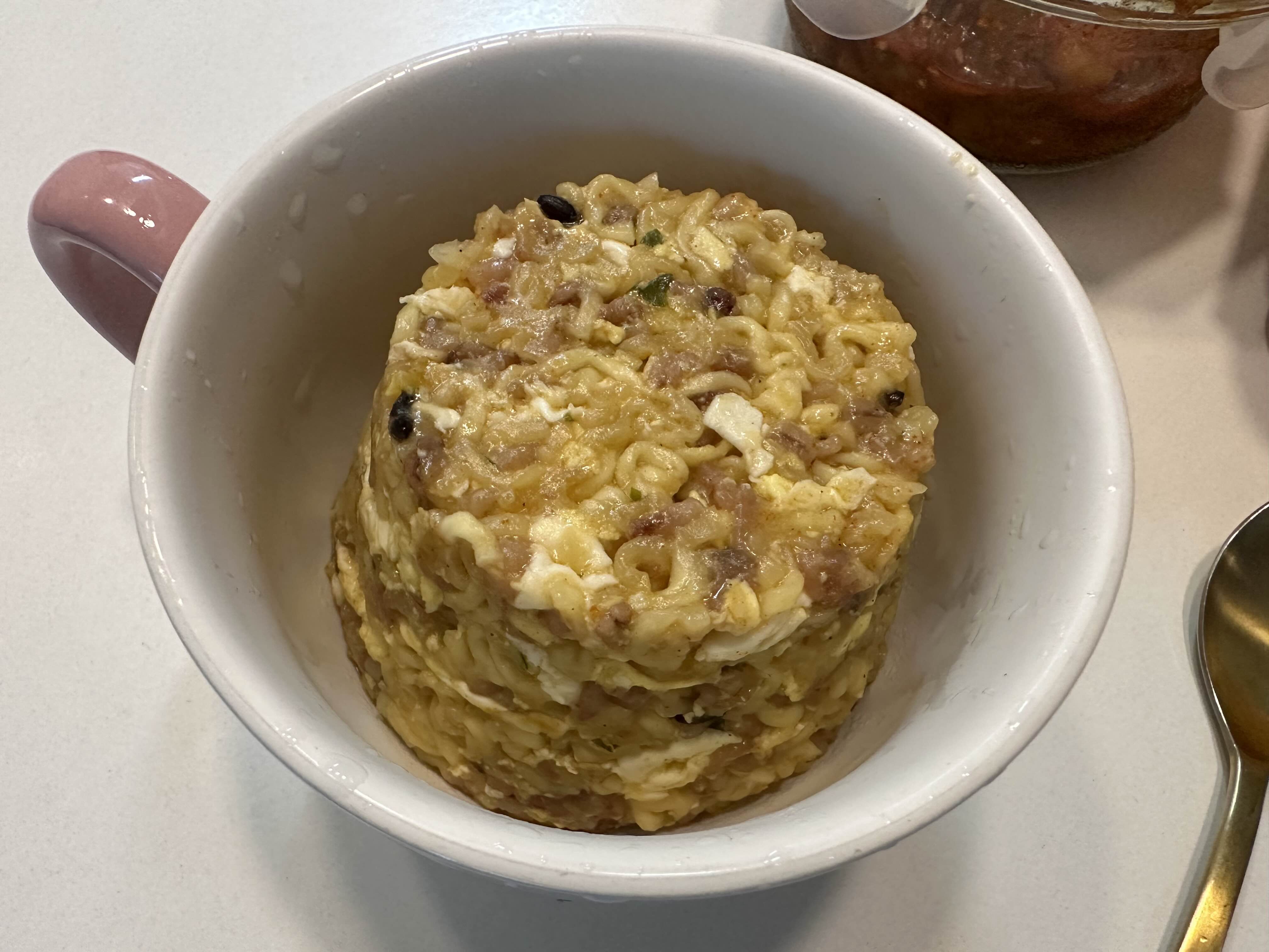 4. 밥 적당량과 컵라면 내용물 투하
